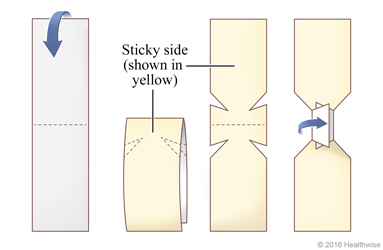 A butterfly bandage can be used to hold the edges of a cut together while it heals. To make a butterfly bandage:
