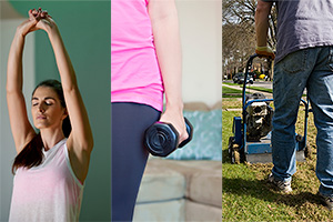 It's best to increase your activity in all three types of fitness: flexibility, aerobic fitness, and muscle fitness. You can work on all three types without leaving home.