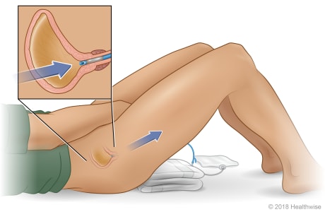 Lie down flat on your back. This may be more comfortable with your knees bent. Or you can be in a standing position or sitting on the toilet to remove the catheter, if that's comfortable.