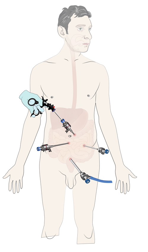 Between 4 and 6 small cuts (incisions) are made in your belly (abdomen). A camera and instruments are used to take out the unhealthy bowel. The healthy ends of bowel are then sewn together.