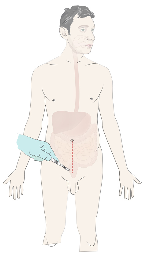 One cut, 4 to 8 inches (10 to 20 cm) long, is made in your abdomen. The unhealthy bowel is taken out and the healthy ends are sewn together.