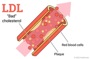 Having high cholesterol can lead to the buildup of fatty deposits called plaque (say "plak") in artery walls. This can increase your risk of heart attack and stroke.