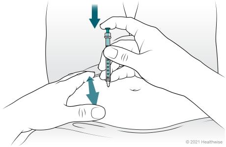 Let go of the pinched-up area, and push the plunger of the syringe all the way in.