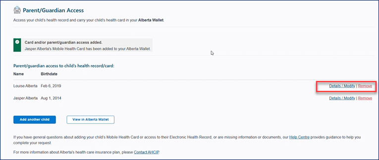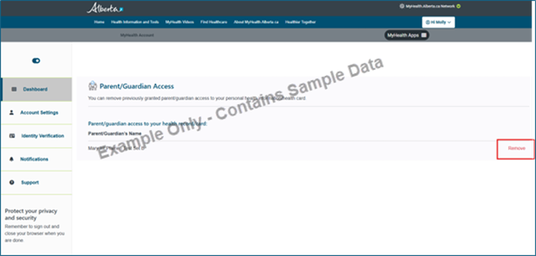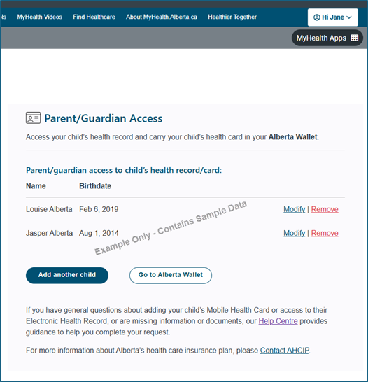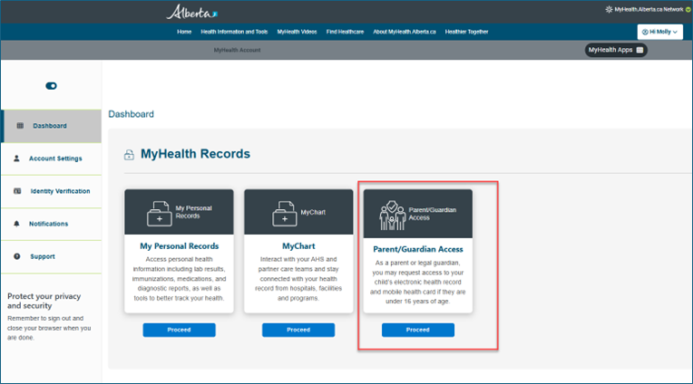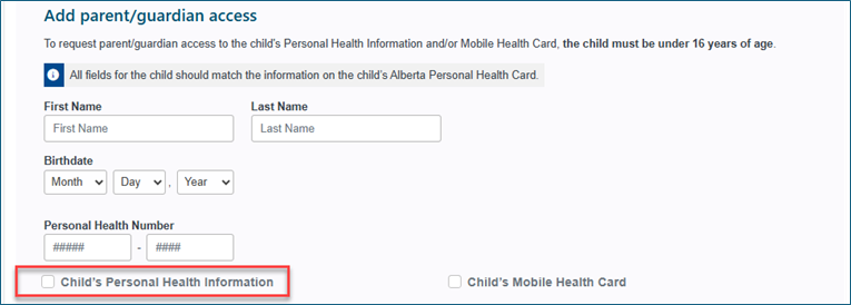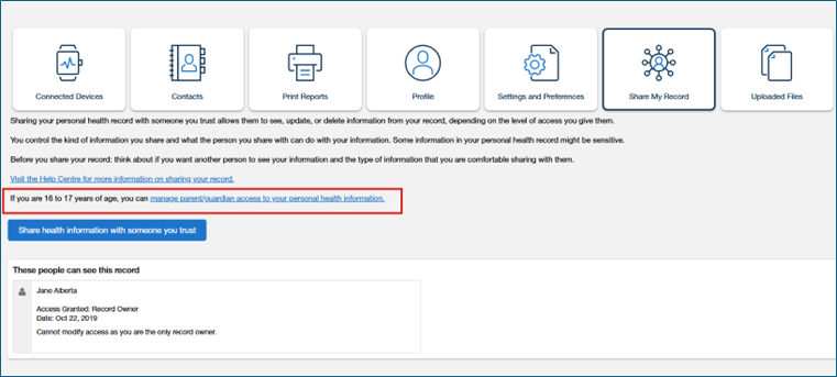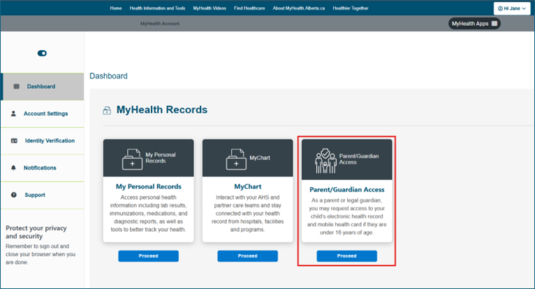 Can parents/guardians access their child’s personal health information within MyHealth Records?
